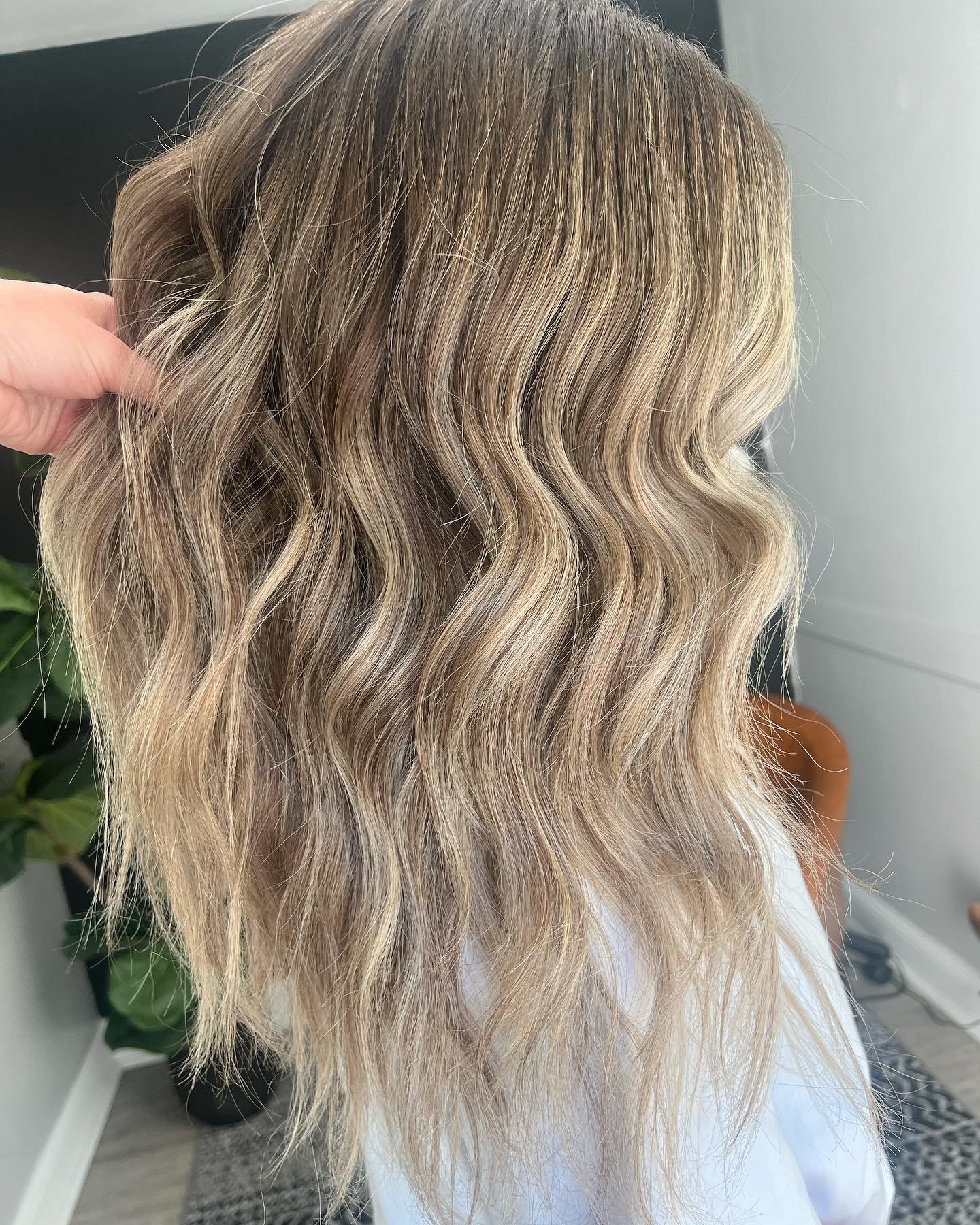 Balayage + toner + root smudge + olaplex treatment + haircut